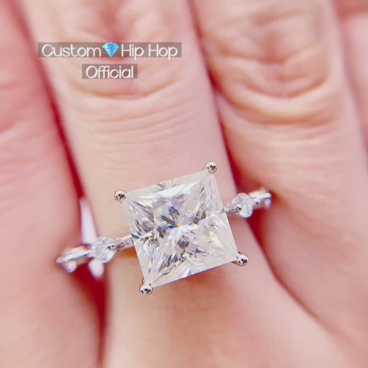 925 Sterling Silver White Gold Color Princess Cut VVS Moissanite Diamond Engagement Ring 4.35CT