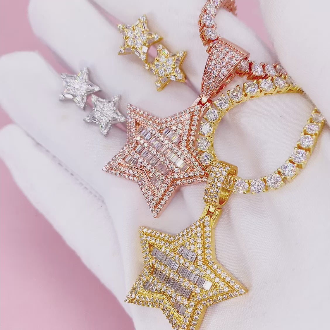 Sterling Silver 925 David Star Shaped Pendant With Earrings Set VVS Moissanite Jewelry For Women