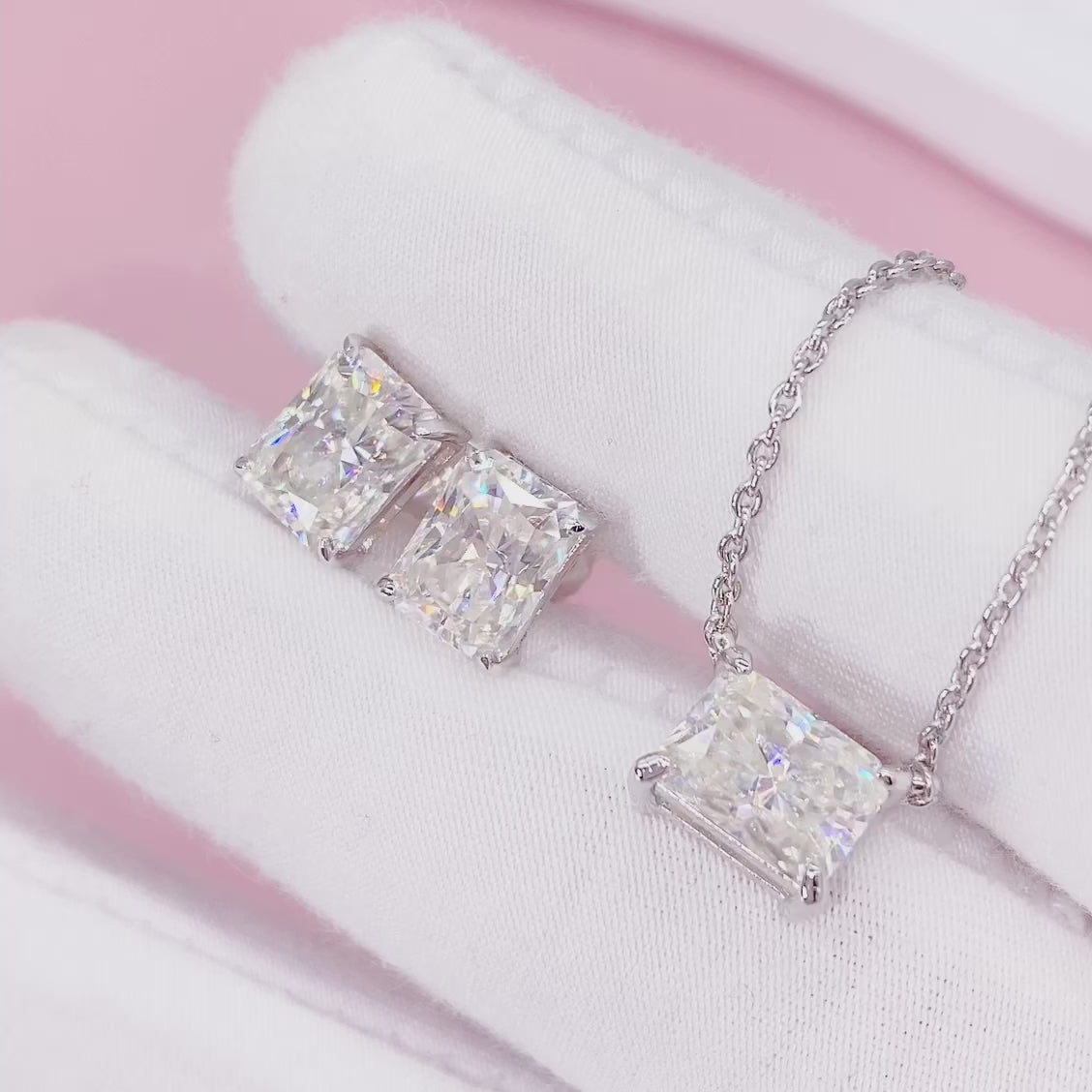 White Gold 925 Sterling Silver Pass Diamond Tester Women Jewelry Radiant Cut Moissanite Necklace Earrings Set