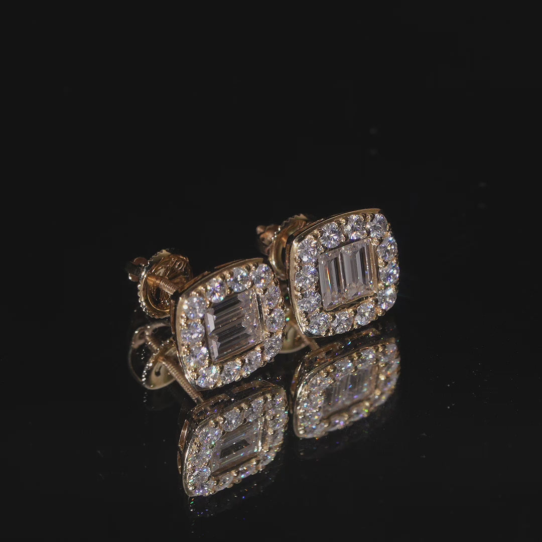 Stylish Pass Diamond Tester Baguette Moissanite Diamond Studs 10K Gold Screw Back
