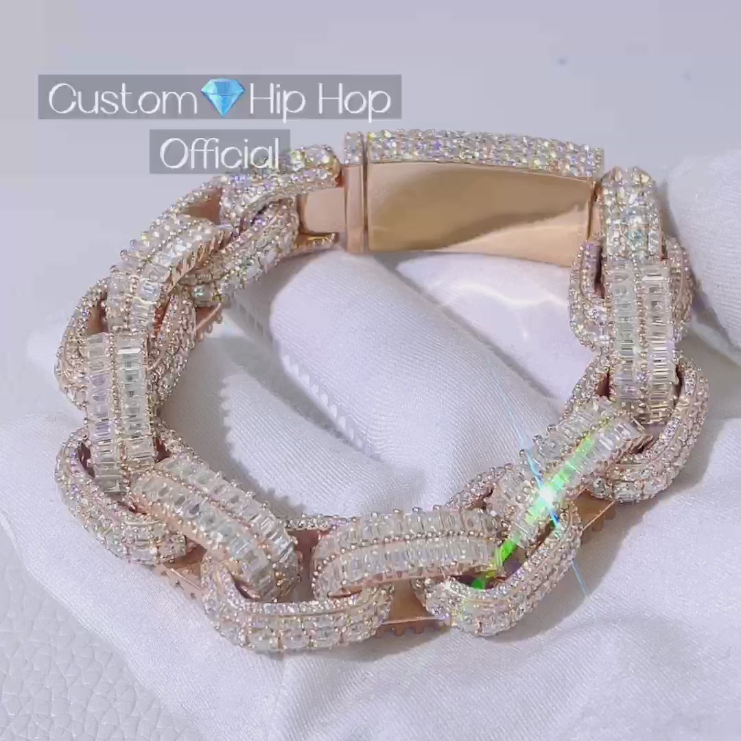 Elevate your style with the luxurious 15MM Hermes Box Link Bracelet, crafted from sterling silver with a lustrous rose gold plating. This exquisite piece features VVS Moissanite stones that pass diamond tests, ensuring brilliance and quality. Each bracelet comes with a GRA certificate and is presented in an elegant gift box, perfect for those seeking a statement accessory. Custom orders are crafted within 4 weeks post-payment.