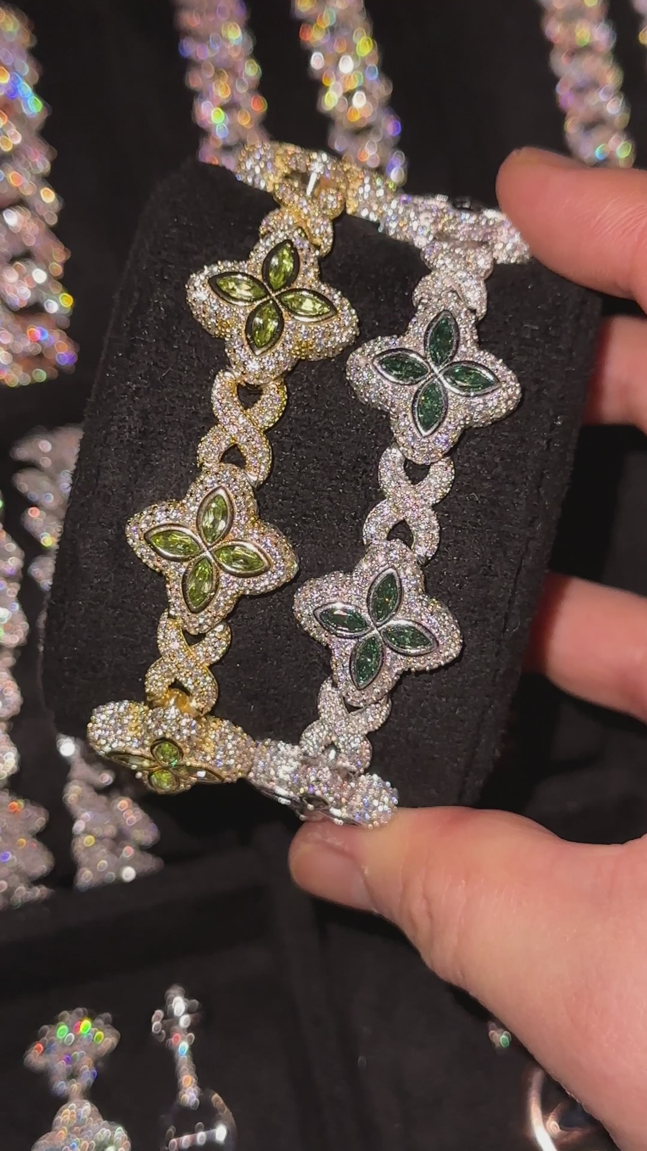 18MM Sterling Silver Iced Out Moissanite Clover Bracelet Hip Hop Jewelry