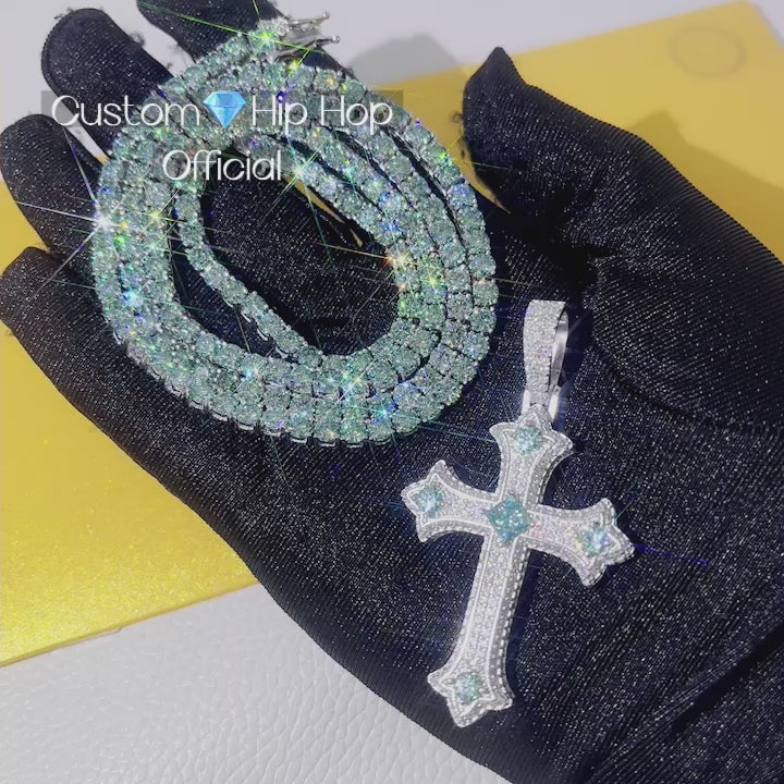 White Mix Blue Moissanite Cross Pendant Charm in Hip Hop Style for Men2