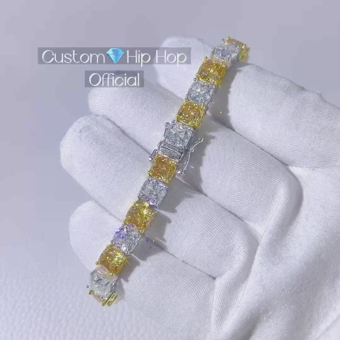 Pulseira de tênis de prata sólida 925 6,5 mm com corte almofadado branco Moisanite Mix Champagne Moissanite