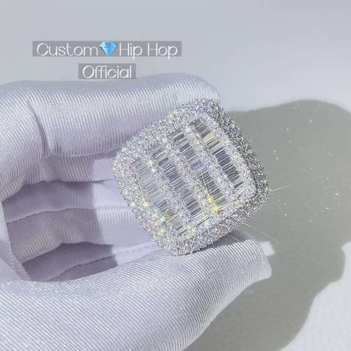 Anel masculino de prata esterlina 925 com corte baguete quadrado gelado VVS Moissanite diamante