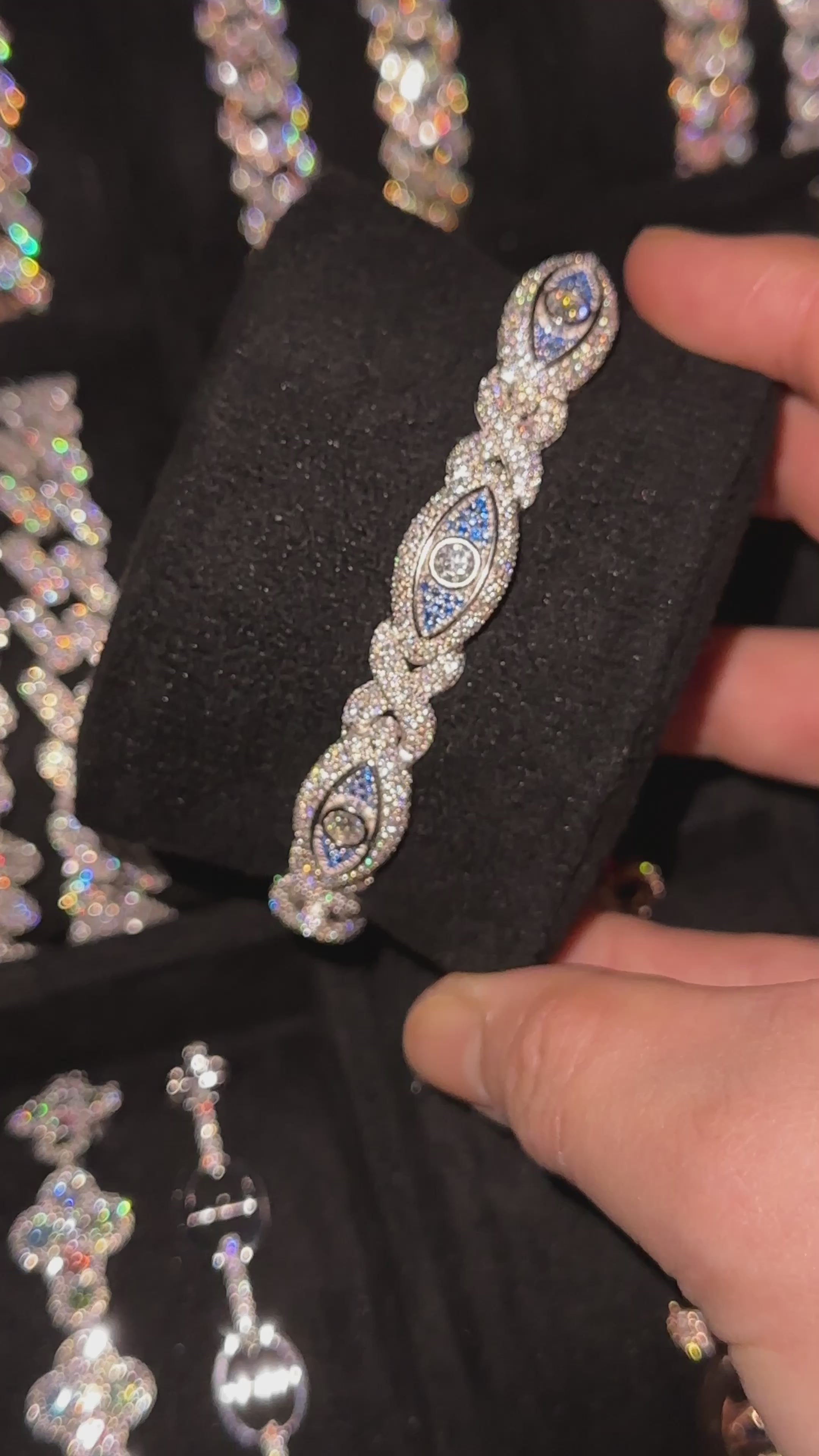 Stylish 925 Sterling Silver Men Jewelry 10MM Moissanite Evil Eye Infinity Link Cuban Bracelet